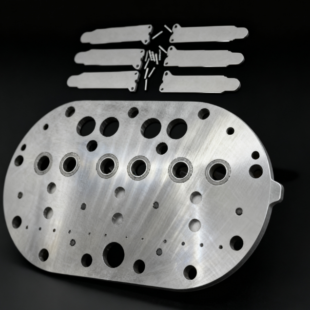 Płyta zaworowa koła dolnego to usługa niestandardowa dla płyty zaworowej sprężarki.Posiada następujące cechy: Nazwa marki – Płyta zaworu koła dolnego;Certyfikacja - ISO9001;Konstrukcja – Płyta Zaworowa;Kolor - Srebrny;Materiał: Stal nierdzewna;Temperatura - wysoka;Funkcja – zawór sterujący, regulator przepływu, element zaworu.